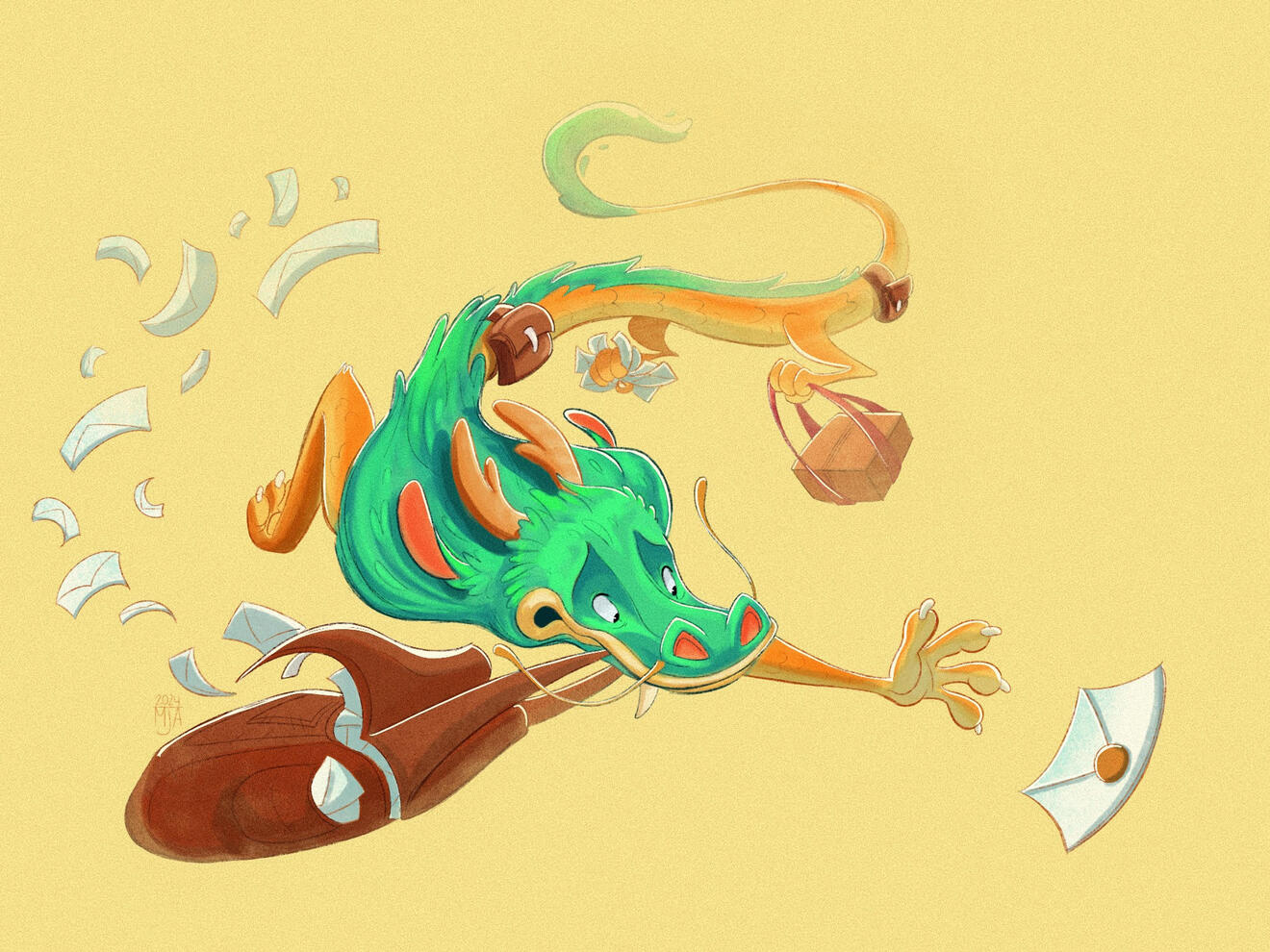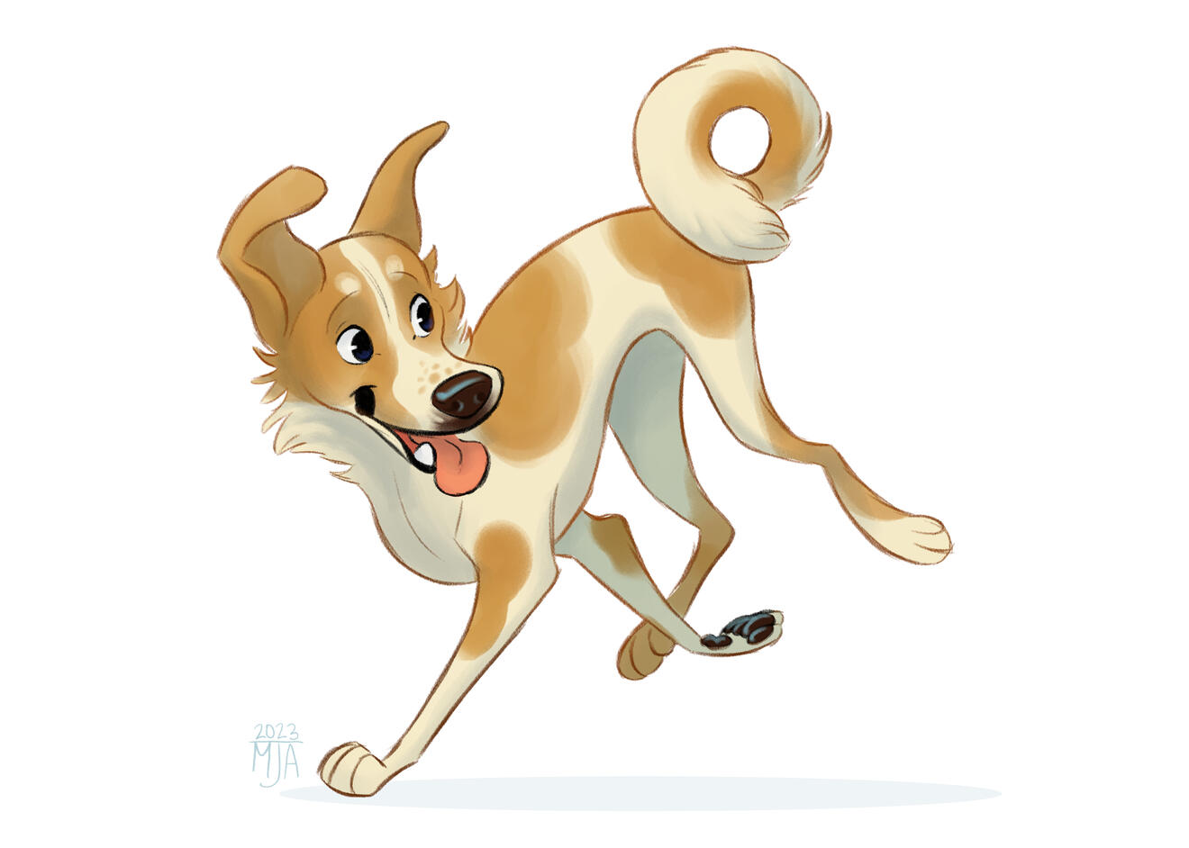 Clean colored full body sketch of one character with a simple shading and lighting style.