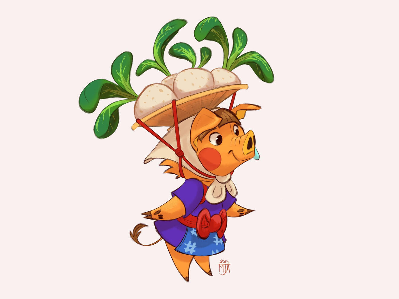 Clean colored full body sketch of one character with a simple shading and lighting style.